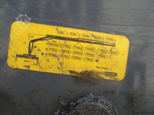 ----Special superstructure: Crane: Palfinger PK 21001L-A 2x hydraulic extension, hydraulic outriggers 2-fold high seat, oil cooler Control system for grab and servo read load diagram: 5.9m 3410kg, 8.2m 2390kg, 10.8m 1780kg----Superstructure: Building material platform with raised bulkhead, folding center stanchions, lashing eyes----Retarder, High Performance Engine Brake German vehicle in original condition, super nice clean vehicle ready for immediate use.