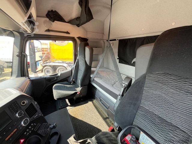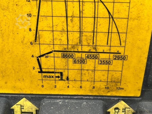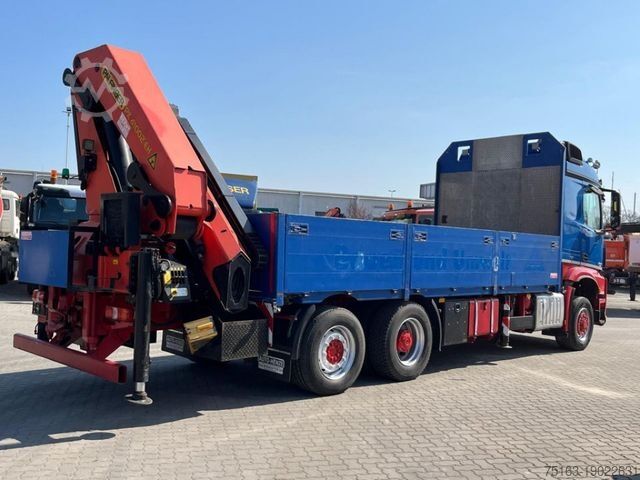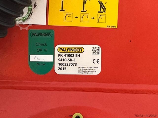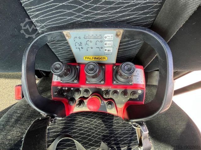 ----Special structure: Crane: Palfinger PK 41002-EHC (Power Links Plus), load capacity max. 13.4t, foldable, radio remote control + floor control, 4-way hydraulic + 2-way manual extension (working height approx. 19.4 mtr), fully hydraulic 4-point support, oil cooler, 6th + 7th control circuit for rotary servo and stone grab operation. Load diagram read: Lifts at 4.1m-8.6t, 5.7m-6.1t, 7.5m-4.55t, 9.5m-3.55t, 11.5m-2.95t.13.7m-2.35t, 16.1m-1.92t.----Construction: Open platform, raised front wall, 3-part aluminum side walls left + right, extendable center and rear stanchion, steel floor, lashing eyes, 2 container locking pairs (twist lock). Loading height approx. 1,150 mm