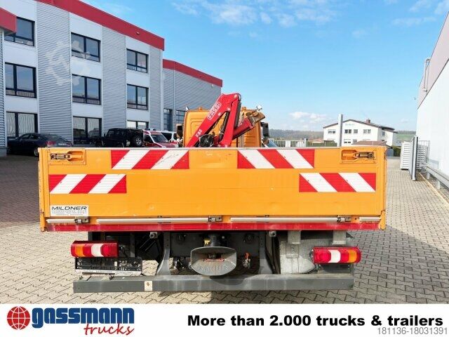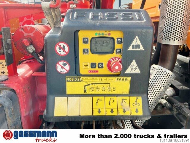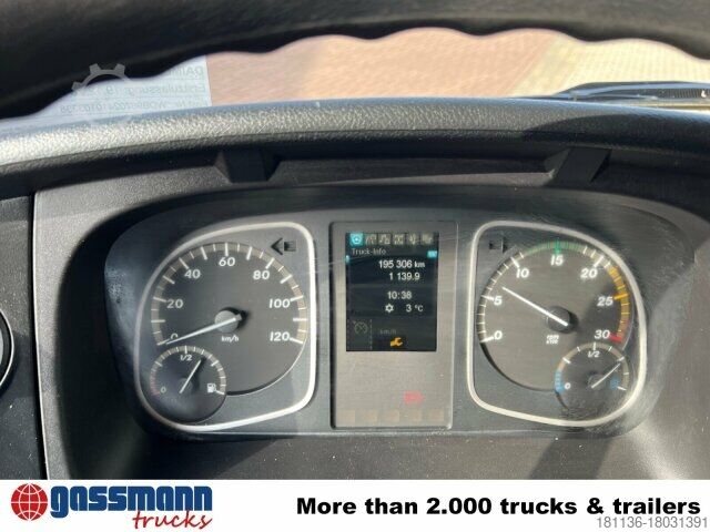 Wheelbase: 4520 mm Body: Platform body with crane Fassi F85B.0.21 4.1t front axle, rear axle Hypoid 8.1t disc wheel 325, electronic brake system with ABS and ASR, disc brakes on front and rear axle, condensation water monitoring for compressed air system, rear axle stabilizer for extremely high loads, steel front underride guard, standard cockpit, pollen filter, PSM, high performance engine brake, pre-equipment for toll collection, daytime running lights, ESP, lane departure warning system, Active Brake Assist, power take-off MB 60-2c MPA Low N-torque.