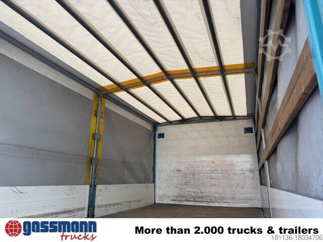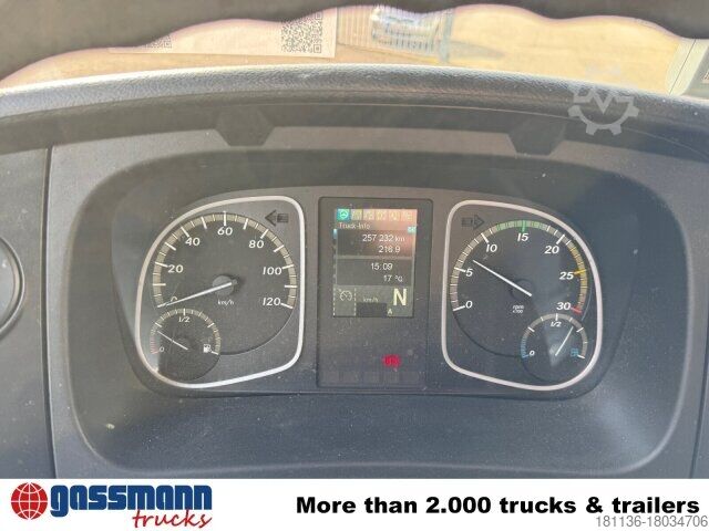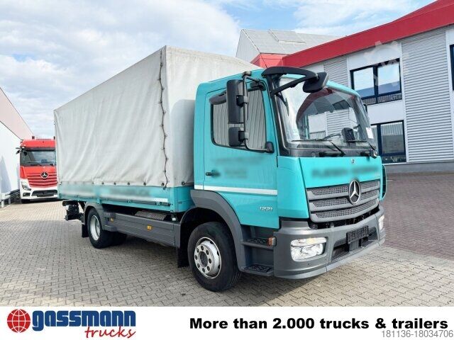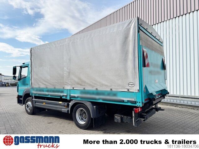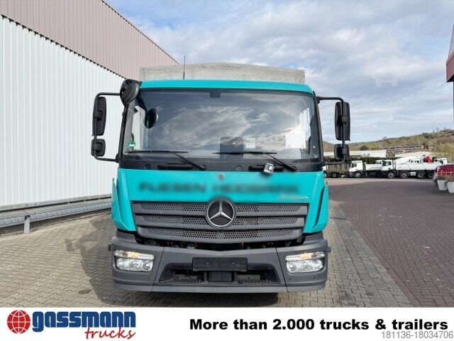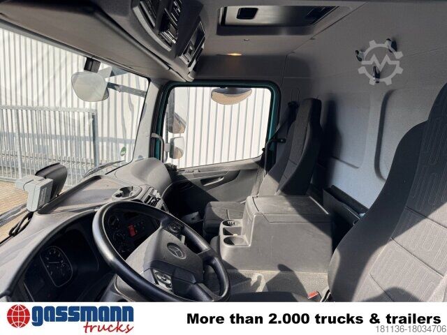 Vehicle location: Bovenden, ClassicSpace, Active Brake Assist, Mercedes PowerShift 3, registration number: Haus, 1x comfort seat, heated seats, electric mirrors, heated mirrors, left electric window, right electric window, air conditioning, cruise control, ABS (anti-lock braking system), traction control (ASR), constant throttle, frame cladding, leaf air suspension, tarpaulin and bows, lashing eyes, underbody protection, pendulum flaps, roof hatch, aluminum tail lift, vertical, green environmental sticker. Wheelbase: 3560 mm. Body: Stuerenberg flatbed body with tarpaulin & 1.5t tail lift, BÄR BC1500S4 5.3t front axle, rear axle with 390 hypoid ring gear, 11t, electronic braking system with ABS and ASR, disc brakes on front and rear axles, condensate monitoring for the compressed air system, rear axle stabilizer, steel front underride protection, classic cockpit, pollen filter. Rain/light sensor, economy drive mode, Mercedes Powershift 3, toll preparation, daytime running lights, engine brake, lane keeping assist, Active Brake Assist, ESP, fuel tank capacity: 120 l.