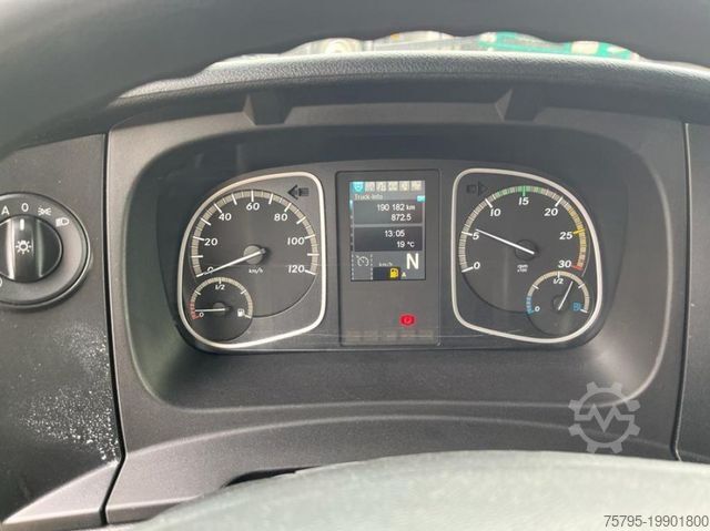 ----Special structure: Tail lift: DHollandia DHLM.15, load capacity: 1,500 kg, shield height: 1,800 mm, aluminum, foot control.----Structure: Young flatbed structure/tarpaulin + bows, hardwood floor, lashing eyes, foldable center stanchion.----Vehicle. Service book maintained by DB, last service carried out in 07/22 at 178 tkm!