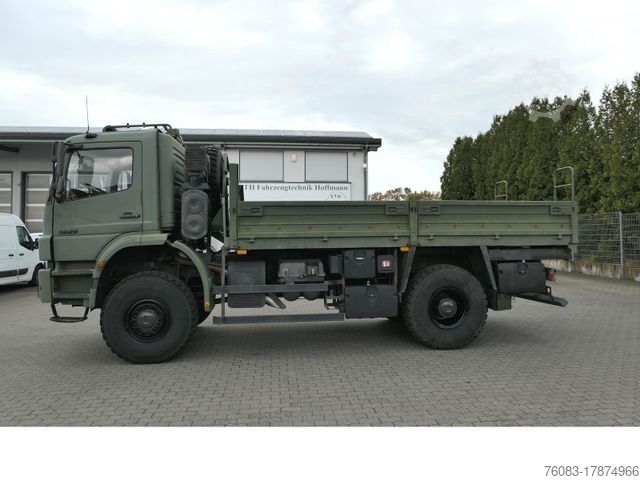 Euro 4 green environmental badge , all-wheel drive 4x4 , flatbed with tarpaulin 5.1m x 2.45m x 2.1m , leaf-sprung, 9-speed manual gearbox, 3 seats , tires 14.00 R 22.5 , reduction gearbox, 3x differential lock center + front + rear , air conditioning , auxiliary heating , - Subject to prior sale and errors - Sale only to traders or export - Vehicle no.: - 141