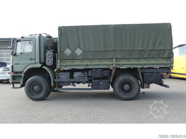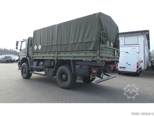 Euro 4 green environmental sticker, 4x4, flatbed with tarpaulin (5.1m x 2.45m x 2.1m), leaf spring suspension, 9-speed manual transmission, 3 seats, 14.00 R 22.5 tires, low-range gear, 3x differential locks (center, front, and rear), air conditioning, auxiliary heating. - Subject to prior sale and incorrect information - Sale to businesses or export only - Vehicle number: - 13