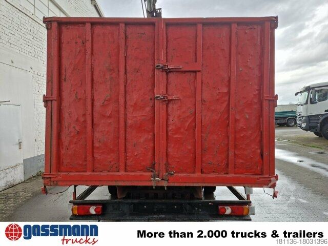 Wheelbase: 3900 mm Body: Container body with hinged doors approx. 17m³ & crane Palfinger PK6001-A with high seat (year 2001) Crane from year 2001!