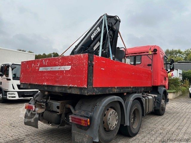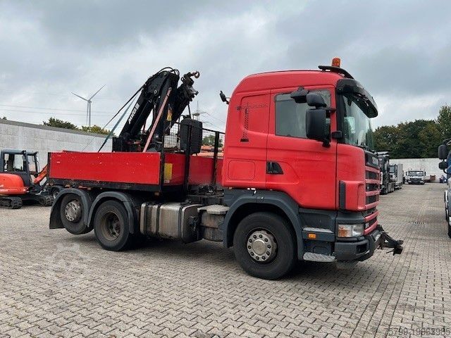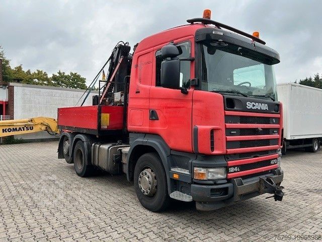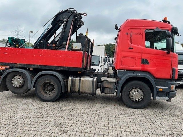 SCANIA 124 L 470 Flatbed + extra MKG HLK 201 HP crane on the loading bed