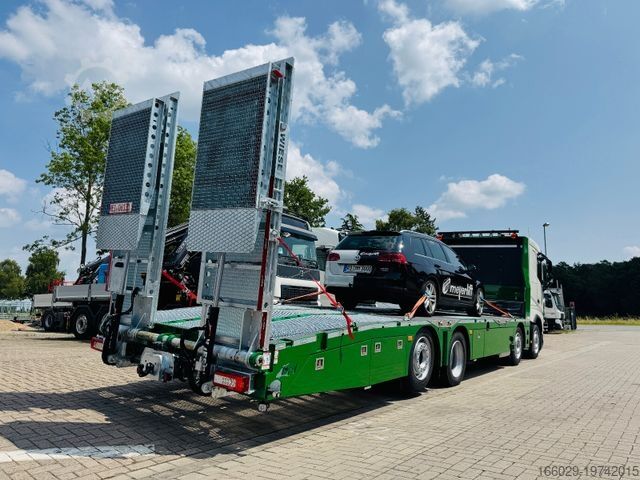 WIESE body for platform and construction machine transport with hydraulic loading ramps