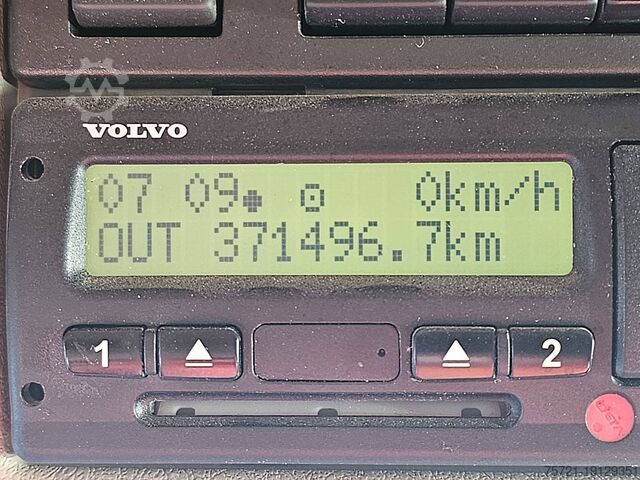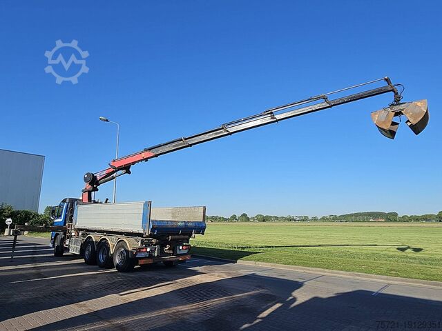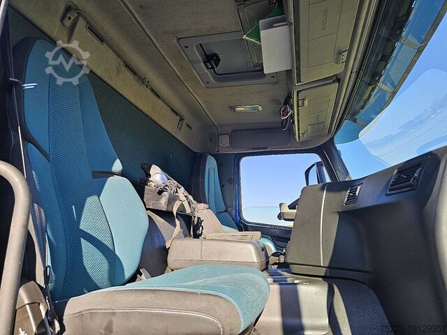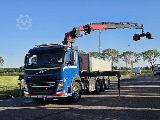 Number of axles: 4, Configuration: 8x2, Unladen weight: 19,265 kg, Gross weight: 35,500 kg, Total tank capacity: 200 liters, Trailer coupling, Number of differential locks: 1, Suspension type: Air suspension, Cabin type: Short Cab, Cruise control, Tachograph (control device), Digital tachograph, Air conditioning, Auxiliary heater, Color: Blue, Engine manufacturer: Volvo, Engine power: 345 kW (463 HP), Euro standard: 6, Transmission type: I-Shift, Gears: 12, Power steering, ABS, ASR, PTO, PTO type: 1, Pump, Crane, Crane manufacturer: HMF 3220-K5, Year of crane: 2015, Crane lifting capacity: 32, Max load: ?, Number of stabilizer legs: 2, CE certified, Remote control, Crane position: behind the cab, Extendable: 5, Additional hydraulic connection: none, Rotator, Load hook, Grab, HMF 3220 K5