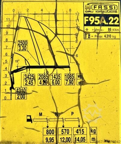 2 axle 180ptt truck, set up with 5.25x2.55m fixed body, payload 9610kg, Fassi F95 crane with 2 hydraulic extensions, crane year 2006, manual transmission.