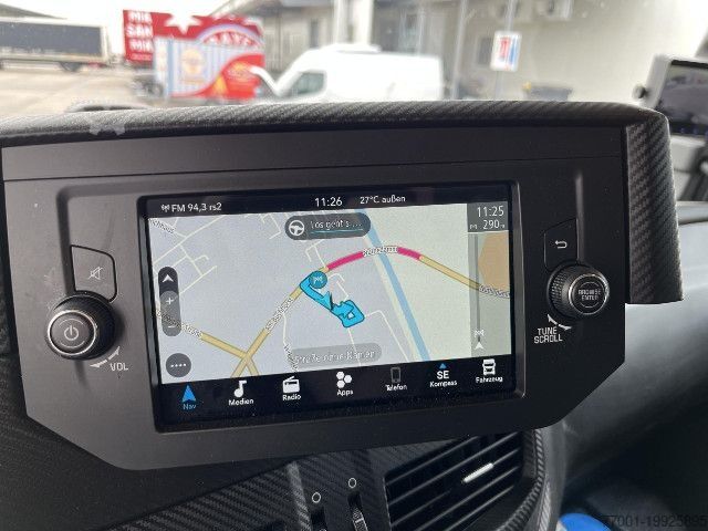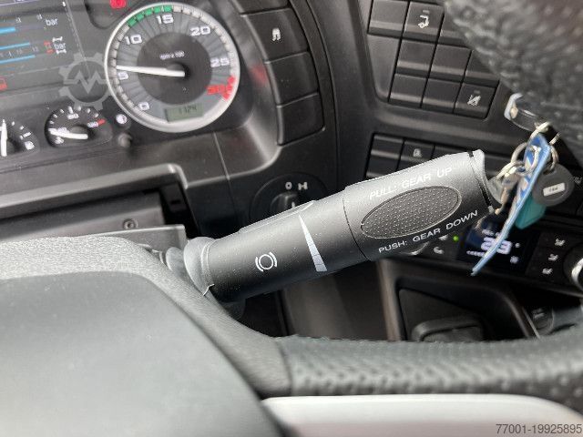 Color: Iron Grey IC 072 RAL 7011, Unladen weight: 12,110 kg, Permissible gross weight: 18,981 kg, Cargo area (L x W x H): 7,500 mm x 2,480 mm x 2,200 mm, Cargo volume: 40 m³, Fabric seats, Air suspension, Automatic climate control, Auxiliary air-conditioning, Adaptive Cruise Control (ACC), Comfort driver's seat, Air-suspended driver's seat, Seat heating, LED headlights, Digital radio reception (DAB), Lane departure warning assist, Reversing camera, Leather steering wheel, Alloy wheels, Electric windows, Electrically adjustable and heated exterior mirrors, Central locking with remote control, Refrigerator, Work lights, LED daytime running lights, Light sensor, Turn assist, Seat ventilation, Emergency brake assist, Suspended cab.