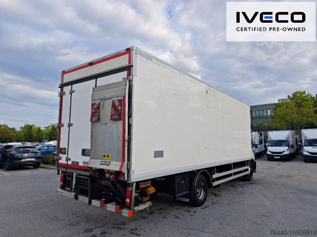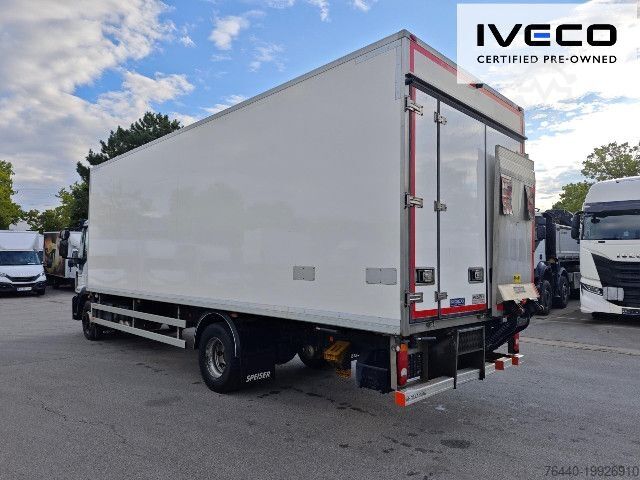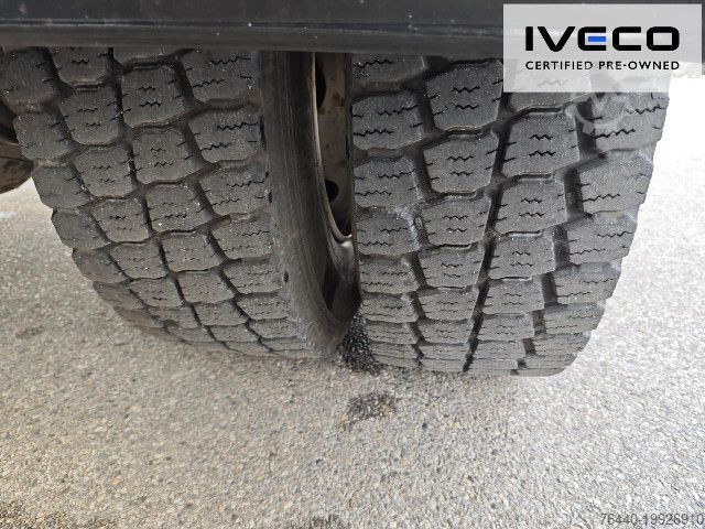 CERTIFIED PRE-OWNED Standard, color: white (IC 194), unladen weight: 8,390 kg, permissible gross weight: 14,000 kg, cargo area (L x W x H): 7,520 mm x 2,440 mm x 2,300 mm, cargo volume: 42 m³, fabric seats, leaf-air suspension, digital tachograph, towing hitch (pintle type), low noise: EEC 92/97, electronic stability program (ESP), traction control system (ASR), comfort driver's/passenger's seat with lumbar support, air-suspended driver/passenger seat, driver's armrest, heated driver/passenger seat, radio/CD, multifunction display: Iveco Control Display High Line, hands-free Bluetooth preparation, lane departure warning system, multifunction steering wheel, lumbar support for driver/passenger, electric windows, electrically adjustable and heated exterior mirrors, immobilizer, central locking with remote control, tinted windows, rear differential lock, front underride guard, sun visor, twin tires, spare wheel, LED daytime running lights, speed limiter: 90 km/h, voltage converter, emergency braking assistant, anti-spray devices, AdBlue tank heater, ECO-ROLL, errors and changes excepted. Sale to business customers only.
