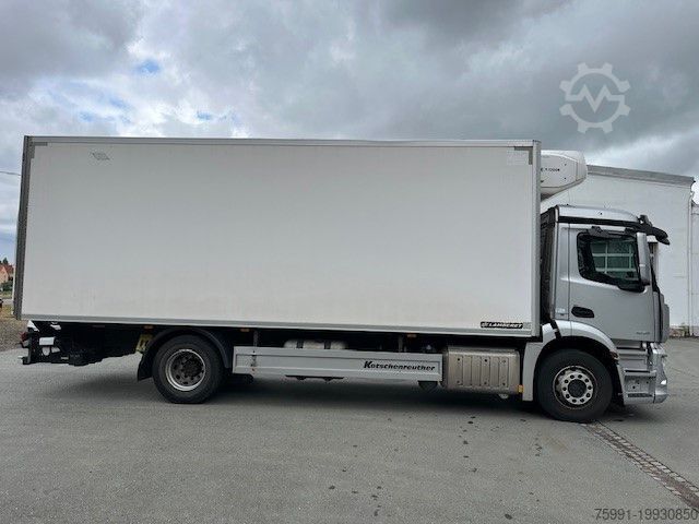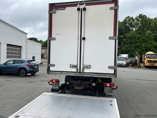 Well-maintained Mercedes Benz Antos 1835 refrigerated truck equipped with Lamberet deep-freeze box body, tail lift, and Thermoking refrigeration unit (diesel/electric).