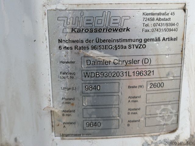 Корпус холодильного бокса WIEDLER, перегородка может перемещаться и складываться, 2 анкерные направляющие для запирающих стержней с каждой стороны, алюминиевый клетчатый пол, тип холодильного агрегата CARRIER: Supra 950 Mt°, испаритель, двустворчатая дверь со шпингалетным замком на задняя часть, тормозные соединения Duo-Matic, автомобиль может быть покрыт рекламой и/или маркировкой