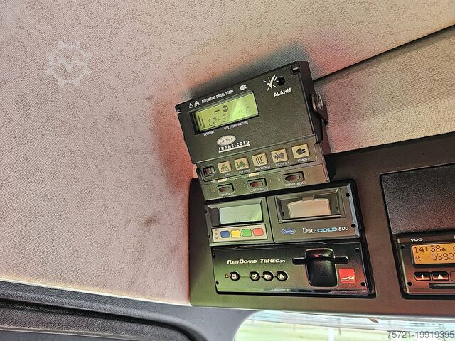 Number of axles: 2, Configuration: 4x2, Twin tires, Payload: 9,500 kg, Curb weight: 10,000 kg, Gross weight: 19,500 kg, Total tank capacity: 200 liters, Number of diff locks: 1, Suspension type: Air suspension, Cab type: Short cab, Cruise control, Tachograph (control device), Digital tachograph, Air conditioning, Electric windows, Electric mirrors, Radio/cassette, Color: Multicolor, Heated mirrors, Lighting type: Halogen, Speed limiter, Engine power: 175 kW (235 HP), Fuel: Diesel, Euro: 6, Transmission type: Automatic, Transmission make: Mercedes Benz, Speed limiter, Gears: 12, Power steering, ABS, ASR, Starter battery, Seats: 2, Seating arrangement: 1+1, Upholstery: Fabric, Seat adjustment: Manual, Refrigeration unit manufacturer: Carrier, Model: SUPRA 1150 Mt, Refrigeration: Diesel/electric, Engine hours (diesel): 11,026, Body insulation, Wall thickness: 40 mm, Cooling type: Chilling and freezing, Day/night cooling: Yes, Additional evaporator, Tail lift, Tail lift version: Rear platform, Tail lift capacity: 1,500 kg, Tail lift manufacturer: Cargolift, Tail lift material: Aluminum, Tail lift size: 211 x 255
