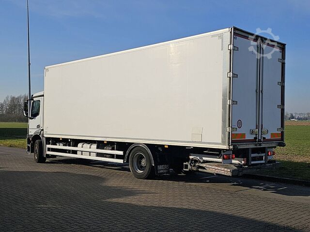 Number of axles: 2, Configuration: 4x2, Unladen weight: 10,968 kg, Gross weight: 20,000 kg, Total fuel capacity: 390 liters, Number of locks: 1, Suspension type: Air suspension, Cab type: Short cab, Cruise control, Tachograph (Control Unit), Digital tachograph, Air conditioning, Color: White, Engine manufacturer: Mercedes, Engine power: 220 kW (295 Hp), Euro: 6, Transmission type: Telligent, Gears: 12, Power steering, ABS, ASR, Cooling engine manufacturer: Carrier, Cooling engine model: ?, Cooling engine: Diesel/electric, Body insulation, Wall thickness: 50 mm, Cooling type: Freezing, Day/night cooling: Day/night cooling, Tail lift, Tail lift design: fold-under tail lift, Tail lift load capacity: 2000 kg, Tail lift manufacturer: Dhollandia, Tail lift material: steel and aluminum, Tail lift size: 192 x 240, Spare tire, Spare tire profile: 5 mm