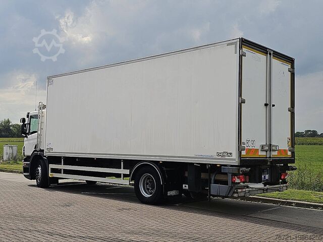 Number of axles: 2, Configuration: 4x2, Twin tyres, Unladen weight: 11,210 kg, Gross weight: 20,500 kg, Total tank capacity: 300 litres, Number of differentials: 1, Cab type: Short cab, Cruise control, Tachograph (control device), Digital tachograph, Air conditioning, Electric windows, Electric mirrors, Radio/cassette, Colour: White, Heated mirrors, Lighting type: Halogen lamp, Speed limiter, Climate control, Seat heating, Engine power: 206 kW (276 Hp), Fuel: Diesel, Emission standard: Euro 5, Gear type: Opti-cruise, Gearbox brand: Scania, Speed limiter, Gears: 8, Auxiliary brake system, Retarder brand: Scania, Power steering, ABS, ASR, Starter battery, Side wall material: Insulated, Seat arrangement: 1+1, Seat material: Fabric, Seat adjustment: Manual, Refrigeration unit manufacturer: Carrier, Refrigeration unit model: SUPRA 950 Mt, Refrigeration unit: Diesel/electric, Wall thickness: 65 mm, Cooling type: Chilling and freezing, Day/night cooling: Day cooling, Additional evaporator, Tail lift, Tail lift version: Fold-under tail lift, Tail lift capacity: 1,500 kg, Tail lift manufacturer: Dhollandia, Tail lift material: Steel and aluminium, Tail lift size: 151 x 240, Chereau, Carrier, folding taillift, Spare wheel, Spare wheel tread depth: 6 %