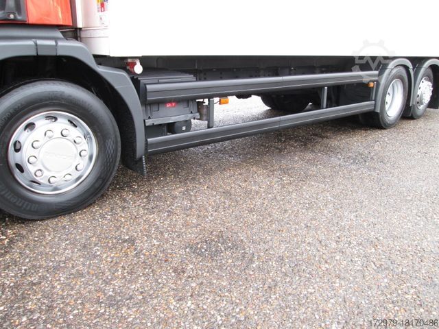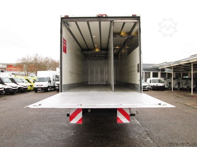 2-seater, power steering, automatic transmission, electric windows, electric exterior mirrors, heated exterior mirrors, multifunction steering wheel, on-board computer, Euro 5, reversing camera, radio-CD, air suspension front and rear, 2xCarrier Supra 950 cooling unit, partition wall in the loading area, power connection, Dhollandia tail lift, lift axle, large tail lift, total length: 11100mm, width: 2600mm, height: 3800mm, empty weight approx. 12950kg, payload: approx. 12750kg. Errors + prior sale + spelling mistakes reserved.