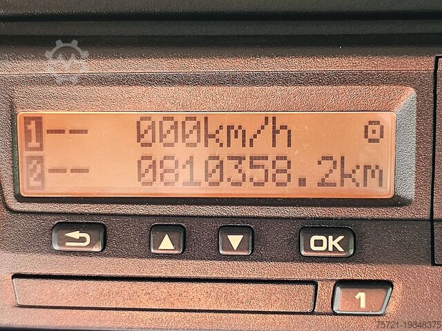 Number of axles: 2, Configuration: 4x2, Payload: 7,383 kg, Curb weight: 8,617 kg, Gross vehicle weight: 16,000 kg, Total fuel tank capacity: 450 liters, Fifth wheel: Fixed, Central lubrication, Suspension type: Air suspension, Cab type: Short cab, Cruise control, Tachograph (control device), Digital tachograph, Air conditioning, Electric windows, Electric mirrors, Color: Green, Heated mirrors, Reversing camera, Lighting type: Halogen lamp, Speed limiter, Lane departure warning system, Seat heating, Bluetooth, Engine power: 169 kW (227 Hp), Fuel: Diesel, Euro: 6, Transmission type: AS-Tronic, Make of transmission: ZF, Speed limiter, Number of gears: 6, Power steering, ABS, ASR, Starter battery, System type: ., Number of seats: 2, Seating arrangement: 1+1, Upholstery: Fabric, Seat adjustment: Manual, Tail lift, Tail lift design: Rear flap, Tail lift capacity: 2,000 kg, Tail lift manufacturer: Dhollandia, Tail lift material: Steel, Tail lift dimensions: 232 x 254