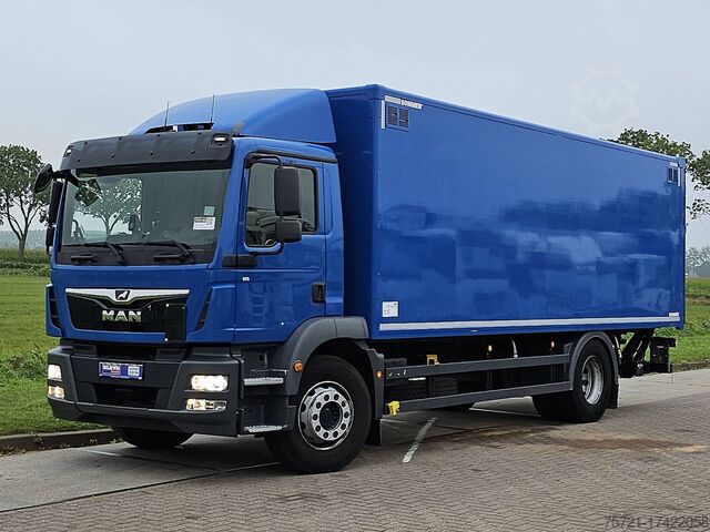 Number of axles: 2, Configuration: 4x2, Unladen weight: 7,775 kg, Gross weight: 15,500 kg, Total fuel tank capacity: 200 liters, Trailer coupling, Kingpin diameter: 40 DIN, Number of locks: 1, Suspension type: Air suspension, Cab type: Short cab, Cruise control, Tachograph (control device), Digital tachograph, Air conditioning, Color: Blue, Reversing camera, Engine manufacturer: M.A.N., Engine power: 235 kW (315 hp), Euro: 6, Transmission type: AS-Tronic, Gears: 12, Power steering, ABS, ASR, Tail lift, Tail lift design: rear flap, Tail lift capacity: 2,000 kg, Tail lift manufacturer: B.A.R cargo lift, Tail lift material: Aluminum, Tail lift size: 221 x 253, Spare wheel, Spare wheel tread: 9 mm