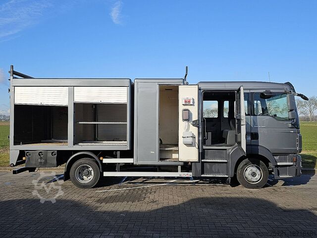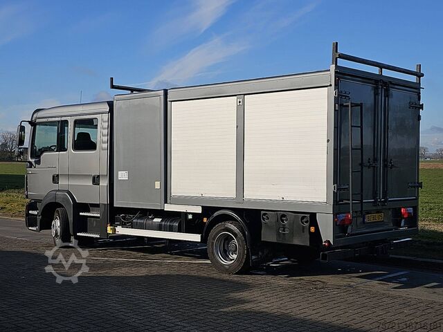Number of axles: 2, Configuration: 4x2, Payload: 1600 kg, Unladen weight: 5890 kg, Gross weight: 7490 kg, Total fuel capacity: 200 liters, Unbraked towing capacity: 750 kg, Braked center axle towing capacity: 3500 kg, Suspension type: Air suspension, Cab type: Double cab, Cruise control, Tachograph (Recording Device), Digital tachograph, Air conditioning, Auxiliary heating, Color: Gray, Engine manufacturer: M.A.N., Engine power: 132 kW (177 Hp), Fuel: Diesel, Euro: 5, Transmission type: Manual, Gears: 6, Clutch pedal, Power steering, ABS, Seats: 6