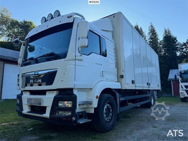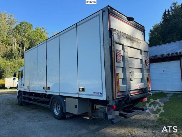 Описание: MAN TGM 4x2 фургон 2017 года выпуска с полной боковой открываемостью и подъемным бортом Zepro. Действующий техосмотр до марта 2026 г. Внимание: требуется проверить подачу топлива. Быстрая поставка возможна. Видео доступно.