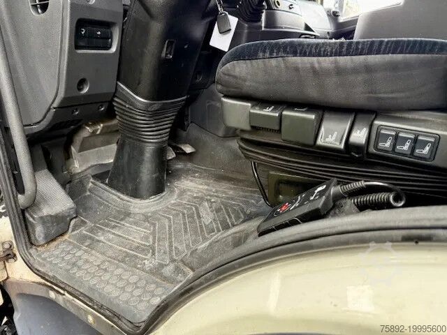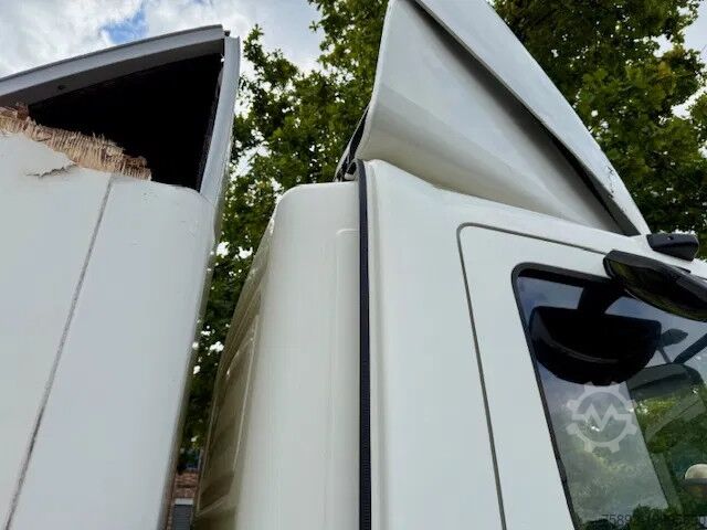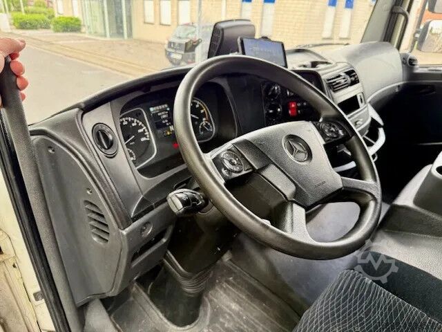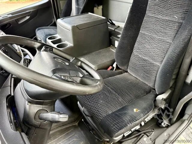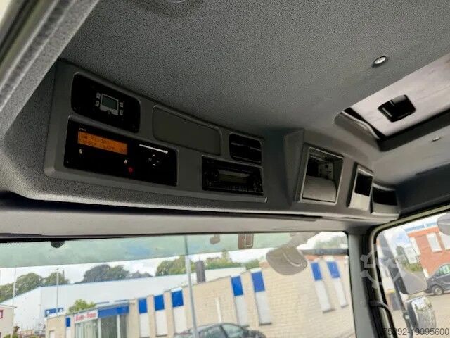 Driver airbag, 12V / 13-pin trailer socket, work light in front of rear axle (maneuvering aid), audio system: CD radio (Bluetooth), 165 Ah battery, rear axle differential lock, assistance system: brake assist (Active Brake Assist), assistance system: lane departure warning, cab variant: S (short with extended rear wall), electric windows, 100A alternator, main switch for auxiliary equipment, 180-litre plastic fuel tank, roof air deflector (lockable), spare wheel, side-mounted spare wheel lift, tail lift switch, circuit breaker, cab seats: passenger seat with armrest, cab seats: driver seat with armrest, cab seats: comfort suspension seat, passenger and driver, exterior sun visor, 12V / 15A socket on dashboard, 24V socket in cab, side underrun protection, toll collection preparation, auxiliary heater (air)
