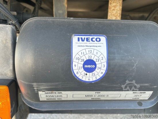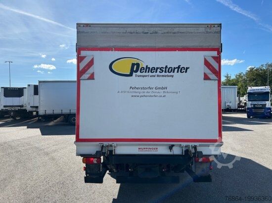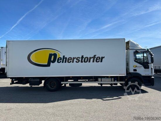 | Iveco ML160E25 box truck | Palfinger tail lift 1,500 kg | Euro 6, air conditioning, roof spoiler | Gross weight: 16,000 kg | Payload: 8,335 kg | Toolbox, spare wheel holder with spare wheel | Tyres: 285/70 R19.5 | Loading area: L: 7.40m H: 2.15m W: 2.50m | Subject to errors, input mistakes, and prior sale.