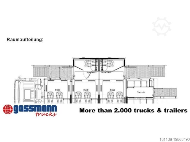 Vehicle location: Bovenden, Lg. Haus, 1x comfort seat, 1x bunk, electric mirrors, heated mirrors, electric window left, electric window right, air conditioning, sun visor, auxiliary heater, 16-speed manual transmission, ABS (anti-lock braking system), intarder, raise/lower, leaf and air suspension, rear axle liftable, green emissions sticker