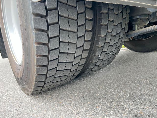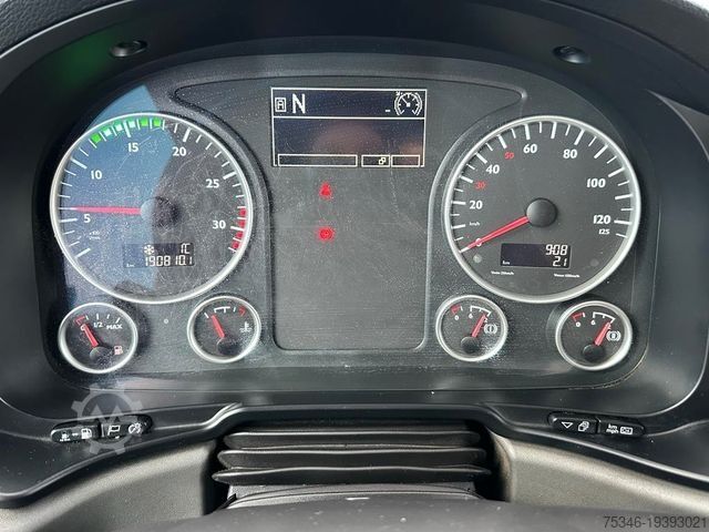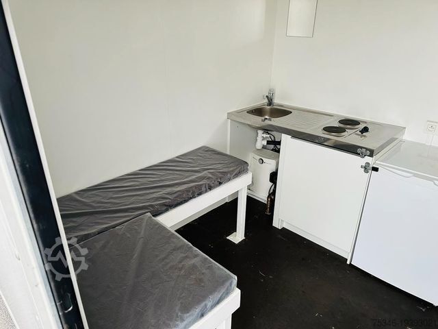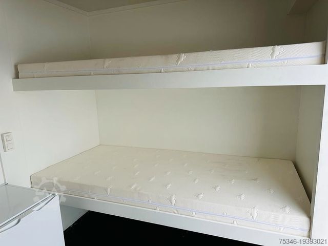 Bench seat, 2 beds, refrigerator, stainless steel water tanks, sink with hot water, 220 volt system, storage space, sockets and other equipment. In the rear box section, loading space for workshop approx. 5.30 m long x 2.42 m wide x 2.44 m high, with loading ramp.