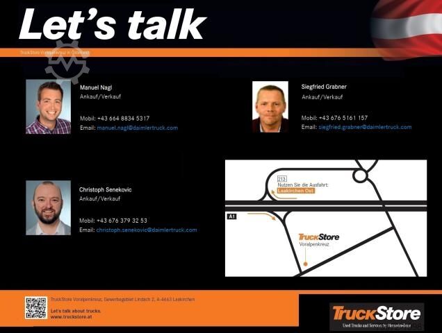 This offer is non-binding. Subject to errors and prior sale. If a foreign currency is specified, it is based on the current exchange rate. The currency of the vehicle location is valid. Engine: OM470, inline 6-cylinder, 10.7 l, 240 kW (326 hp), 1700 Nm, High Performance Engine Brake, Predictive Powertrain Control, front axle air suspension, cab suspension comfort, steel-sprung, rear axle air suspension, 290 l aluminum fuel tank, 60 l AdBlue tank, M-cab ClassicSpace, 2.30 m width, 320 mm tunnel, M-cab, cab width 2.30 m, cab tilting mechanism, mechanical-hydraulic, central locking system, lower berth, air conditioning, additional hot water heater, comfort driver's air-sprung seat, electronic braking system with ABS and ASR, Lane Keeping Assist, Attention Assist, Active Brake Assist, cruise control, Body: ZeBu-Fahrzeugbau, year 2020. Tail lift: Dautel, 2000 kg, 2000 mm platform. Trailer coupling: Maul Ø 40.