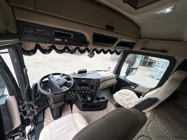 ABS, Apple CarPlay, Блютуз, бортовой компьютер, дополнительные фары, компрессор, кондиционер, круиз-контроль, навигационная система, низкий уровень шума, отопитель стояночный, регистрация автомобиля, система контроля тяги, спальное место в кабине, спойлер