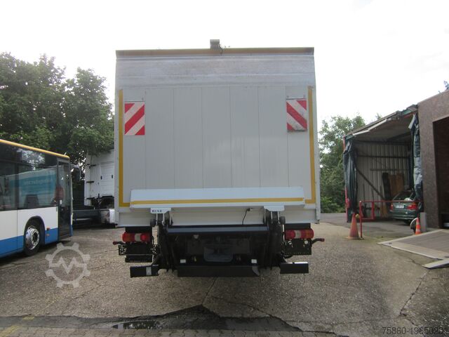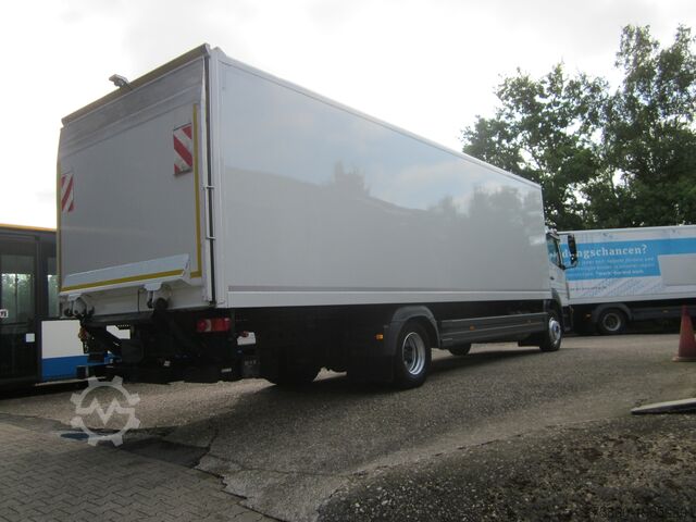 MB 1230 Atego box truck with tail lift 1.5 t, 1st owner, automatic transmission, engine brake, cruise control, air suspension on rear axle, trailer coupling, reversing camera, air conditioning, multifunction steering wheel, lane departure warning, distance warning system, rain and light sensor, daytime running lights, halogen fog lamps, electric windows and heated mirrors, outside temperature display, box body 8.14 m long, multiple units available, sales to trade and export only, errors, changes and prior sale reserved.