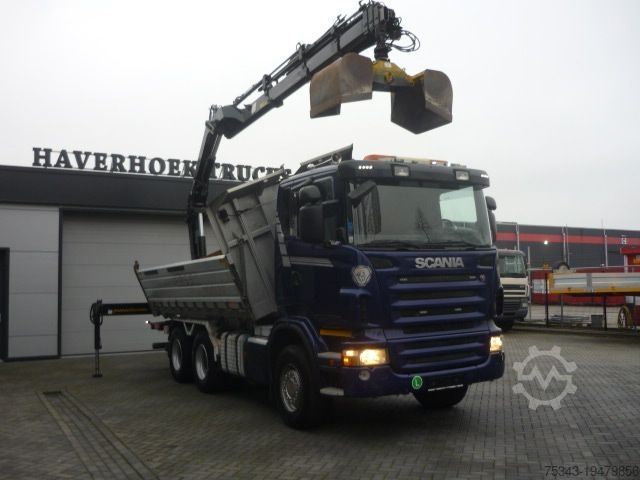 Scania R 420 6x4 Schraml 3 side tipper and removable (Quick hitch) crane Hiab XS 166 - 5 remote controll, Euro 5, Manuell gearbox, Intarder, M Cab whit Bed, Hubreduction axles, Steel suspension, Austrian registration .