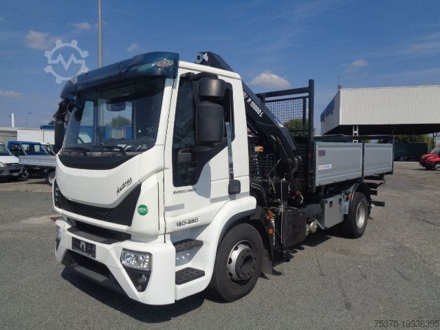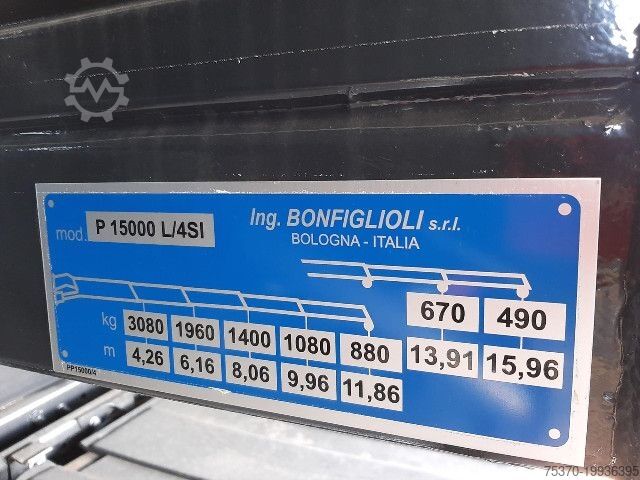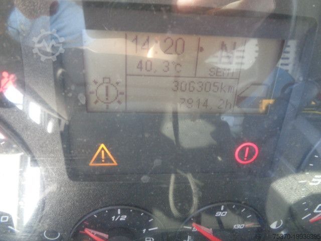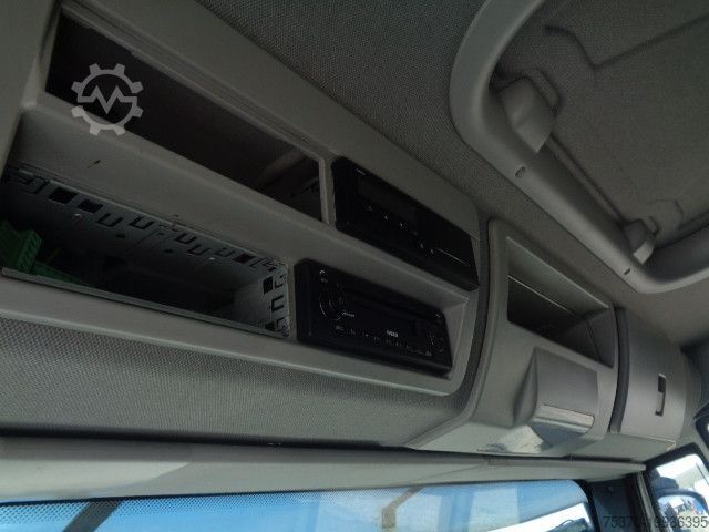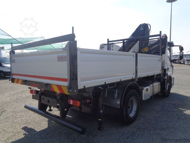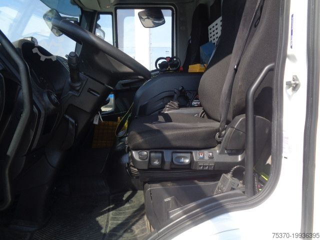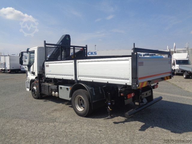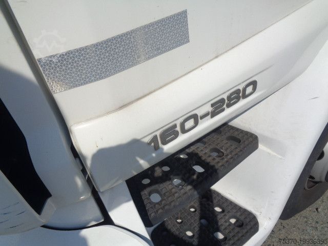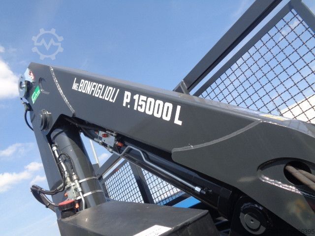 Permissible total weight: 15,990 kg, Cargo space (L W H): 4,240 mm x 2,460 mm x 600 mm, Cargo space volume: 6 m³, Fabric seats, Air leaf suspension, Digital tachograph, Jaw-type trailer coupling, Loading crane mounted behind cab, Low-noise: EC 92/97, Electronic Stability Program (ESP), Anti-Slip Regulation (ASR), Adaptive cruise control, Air-suspended driver's seat, Height-adjustable driver's seat, Driver's armrest, Heated driver's seat, Bi-Xenon headlights, Headlight washer system, Headlight adjustment, Radio/CD, Multifunction display, Bluetooth hands-free pre-installation, Lane-keeping assist, Multifunction steering wheel, Driver's lumbar support, Electric windows, Fog lights, Electrically adjustable and heated mirrors, Immobilizer, Central locking with remote control, Tinted windows, Underrun protection bar: Front, Sun visor, Twin tyres, Spare wheel, Hill-start assist, LED daytime running lights, Manually liftable roof, Speed limiter, Air conditioning in driver's cab, Voltage converter, Emergency brake assist, Anti-spray, NEW BODY: TIPPER. THREE-SIDED BONFIGLIOLI 15000 CRANE WITH 4 EXTENSIONS RADIO CONTROL, NEW BODY: TIPPER. THREE-SIDED BONFIGLIOLI 15000 CRANE WITH 4 EXTENSIONS RADIO CONTROL.