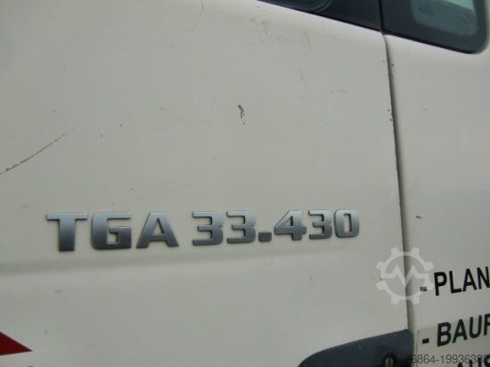 | MAN TGA 33.430 6x4 tipper | Manual transmission, EURO4, trailer coupling | Meiller, air conditioning, analog speedometer | Heated seats, radio/CD, roof hatch | Refrigerator, leaf spring suspension | Electric windows, electric mirrors, differential lock | Austrian vehicle | Palfinger PK 20002 rear crane with remote control | Errors, input errors and advance sales excepted.