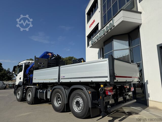 MAN TGS 35.480 NEW FULLY EQUIPPED 9-TON AXLES PM 58.5 CRANE WITH 6 EXTENSIONS + JIB WITH 6 EXTENSIONS 2.5-TON WINCH THREE-SIDED TIPPER BODY LENGTH 5.50 METERS.