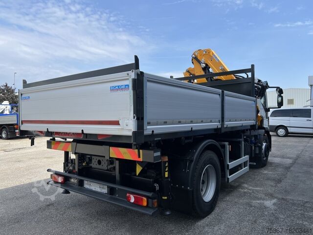 2-axle 180ptt truck, new km 0 vehicle, equipped with a 4.50x2.55m trilateral tipper body, 6780kg payload, Effer series 175 crane with 4 hydraulic extensions + jib with 3 hydraulic extensions, 4 stabilizers, radio control, manual transmission, towable, Euro 6 standard.