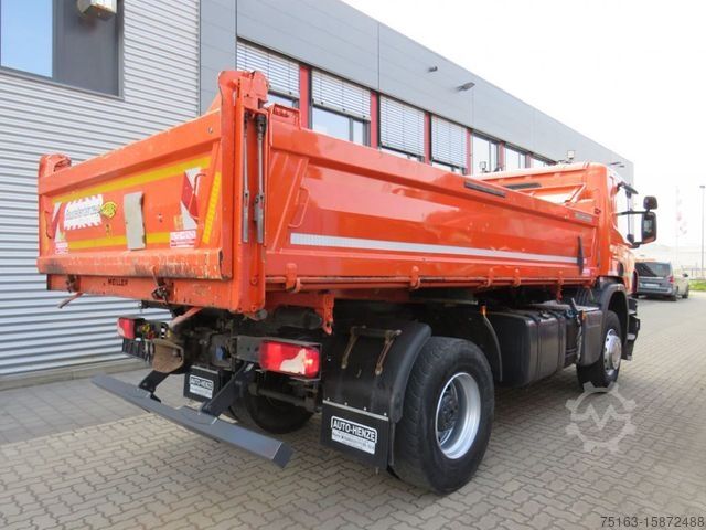 ----Construction: Meiller 3-sided steel, Bordmatik left, spring-loaded side wall right (swinging + foldable), raised bulkhead with excavator protection, lashing eyes.