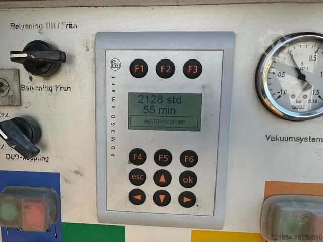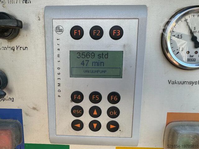 Remote control, sludge extraction (stainless steel sludge tank 10,000 l), Wiedemann KW3000, speed: 1000, m3/h: 3000, vacuum: 400 bar (new vacuum pump, year 2020)