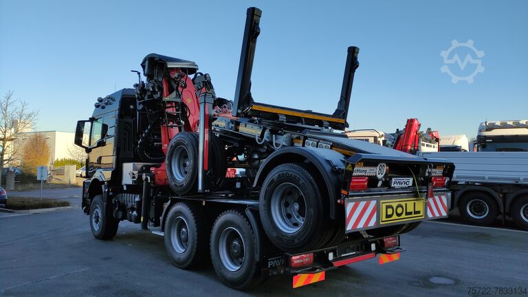 MAN TGS 33.520 with long timber Z - loading crane PALFINGER EPSILON S290Z (96) or TajfunLiv 300Z9.6, as well as DOLL 2-axle self-steering trailer "Kompakt II" or "Ratio" for long timber transport.