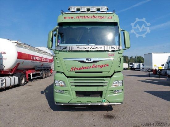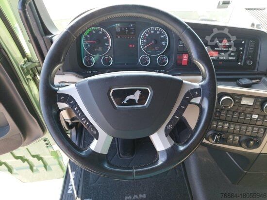 | MAN TGX 26.500 6x4X4 HydroDrive timber transporter | Palfinger M12Z105 crane with timber grapple 2019 | Pritarder | Leather interior, leather steering wheel, auxiliary air conditioning, | Automatic, retarder, EURO6, adaptive cruise control, | Multifunction steering wheel, cruise control, emergency brake assistant, | Seat heating and seat ventilation, auxiliary heating, air conditioning, navigation, | Loading length: 6.10m | Leaf/air suspension, | Wheelbase: 4200/1350mm | Alloy rims, | 3rd axle steering axle and lift axle, | Trailer coupling 50mm | Rear view camera | Engine new approx. 15000km ago | TRAILER IS ALREADY SOLD | Errors, input and advance sales reserved.