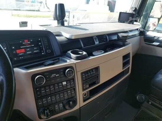 ABS, блокировка дифференциала, бортовой компьютер, дополнительные фары, кондиционер, кран, круиз-контроль, отопитель стояночный, пневматический тормоз, регистрация грузовика, спальное место в кабине, центральный замок