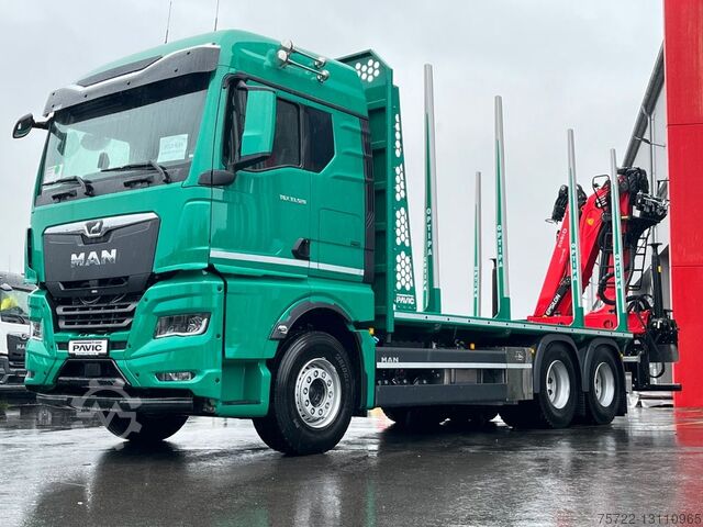 MAN TGX 33 510 6x4 BL PLATFORM short timber truck with crane Epsilon Q150Z96