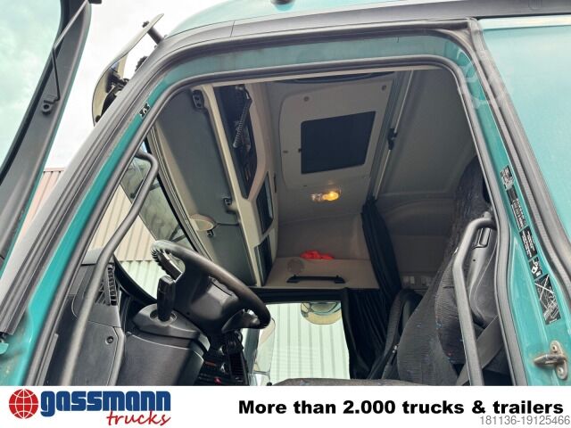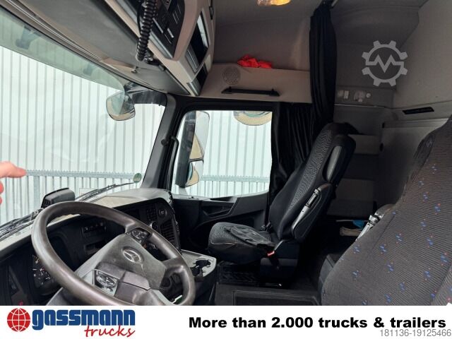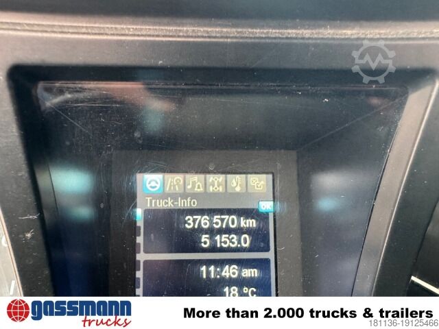 Vehicle location: Bovenden, StreamSpace, Active Brake Assist, Mercedes PowerShift 3, large cab, 1x comfort seat, 1x bunk, seat heating, electric mirrors, heated mirrors, electric window left, electric window right, air conditioning, sun visor, cruise control, electric roof, auxiliary heater, air horn, ABS (anti-lock braking system), traction control (ASR), retarder, PTO, differential lock, fog lights, work lights, storage box, leaf-air suspension, tow hitch air+light, aluminum tank, underrun protection, stanchions, rear crane, emergency stop, grapple control, high seat, 2-point hydraulic support, 1x hydraulic extension, green environmental sticker.