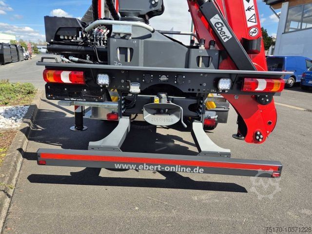 Front axle 8.0 t, Hydraulic Auxiliary Drive (HAD), rear axle 13.4 t, trailing axle 8.0 t steered & liftable, electronic brake system with ABS and ASR, retarder, trailer brake 2-line, wheelbase 4.800 mm, stabilizer bar on front axle, rear underride guard, front underride guard, compressed air connection in cab, air-sprung driver's comfort suspension seat, functional passenger seat, comfort bed below, side sunblind on driver's side, air conditioning, hot water auxiliary heating, electr. air conditioning system, hot-water auxiliary heating, electric lifting roof, automatic safety switch, 24 V / 12 V voltage transformer, 24 V / 25 A power socket in passenger footwell, parameterizable special PSM module, 24 V / 15-pin trailer socket, StreamSpace 2.50 m L-shaped cab, comfort cab storage, sun visor, heated front mirror, air horn, movable cab entrance, comfort locking system with central locking, Mercedes PowerShift 3, wheel formula 6x2 with HAD, 26.0-tonner, air suspension rear axle, radio/CD with Bluetooth, axle load measuring device, pre-fitting CB radio, pre-fitting toll collection, main tank 510 L, AdBlue tank 60 L, Euro 6, 2-cylinder air compressor, transmission oil cooling, trailer coupling, stability assistant, cruise control, EBERT body for short timber transport 6.700 mm, with bulkhead, 4 x EXTE stools D5, 8 EXTE stanchions D5, crane: Epsilon M12Z91 with 2 hydraulic supports, high seat with seat heating, 4 x work lights, fully hydraulic double telescope (reach 9.10 m), oil cooler, rotator + timber grapple: Epsilon FG53