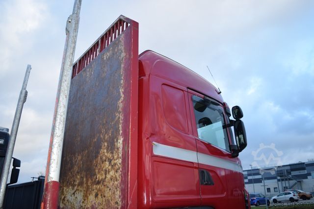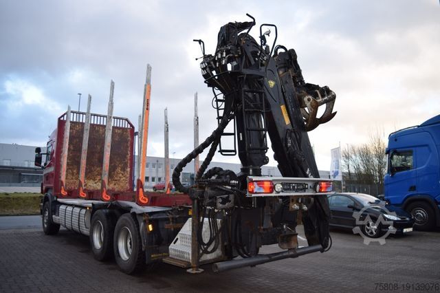 Scania R500 6x4 timber vehicle, Euro 5, Optucruise transmission with clutch, retarder, Epsilon crane M110Z, EXTE stanchions, loading area approx. 6.70 m, leaf air suspension, differential lock, wheelbase 4.70 m, trailer coupling, automatic climate control, auxiliary heating, roof hatch, radio/CD, single-family home