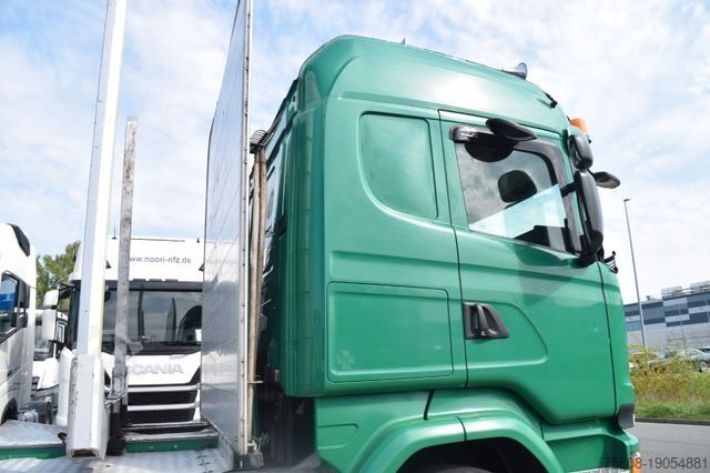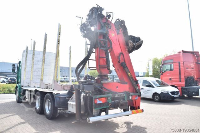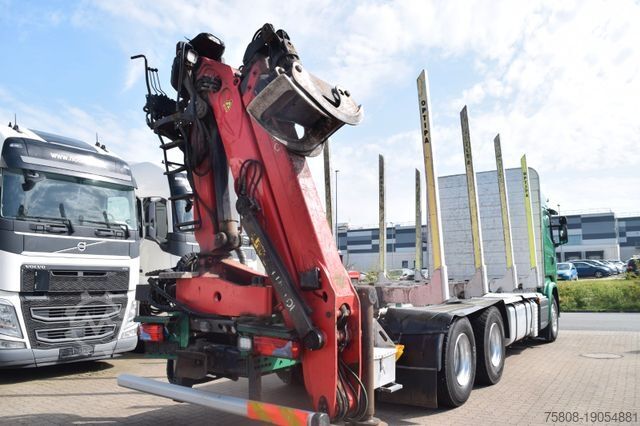 Scania R580 6x4 wooden vehicle, folded rear crane Palfinger Epsilon 150Z(from 2017), Euro6, automatic transmission, retarder, CR19 cab, leaf-air suspension, wooden body with stanchions, trailer coupling, ACC, lane departure warning system, leather seats, automatic air conditioning, auxiliary heating, TV, rotating beacons, air horns, navigation system, refrigerator compartment, coffee machine, heated seats, EFH