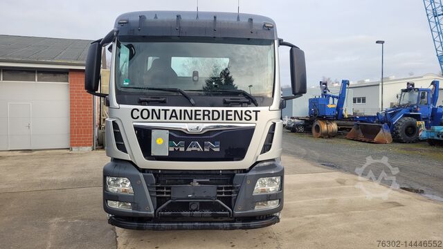 TGS 18.440 BL , ZF manual gearbox , !!! NEW CLUTCH !!! , Meier Ratio ( Palfinger ) AK 13 M body with automatic container securing , cab and radio remote control , NAVI , lane departure warning , distance assistant , headlight cleaning system , reversing camera , German vehicle from 1st hand