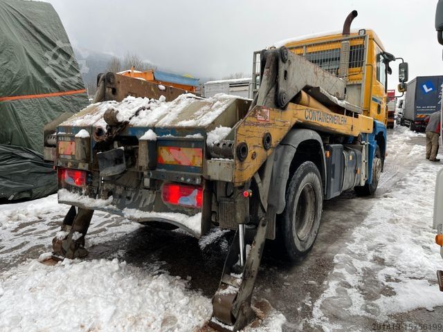 Axle configuration: 4x2, axle load front axle 8.0 t, approach / front mirror, 24V / 7-pin trailer socket, ABS trailer socket, anti-skid control (ASR), electric outside mirrors. adjustable and heated, wide-angle exterior mirrors and electric. adjustable and heated, right, battery 175 Ah, battery box, on-board computer MAN-Tronic, curb mirror right, electronic braking system MAN-Brakematic, EURO 4 engine, driver's cab: M (medium length), comfort driver's seat, tachograph, suspension: leaf / air, electric windows, generator 28 V 80 A, speed limiter system 80 / 85 km/h, 16-speed gearbox - type: ZF 16 S, rear axle HY-1350, interior filter: pollen filter, body/structure: chassis, heated fuel filter, adjustable steering column (steering wheel), headlight range control, 2-cyl. air compressor, engine 10.5 ltr. - 235 kW diesel, radio preparation 24V, disc brake rear axle, disc brake front axle, side protection device, stabilizer front axle, cross member for trailer coupling, underrun protection rear, front axle VOK-08 cranked, electronic immobilizer, central locking, permissible total weight 18.00 t