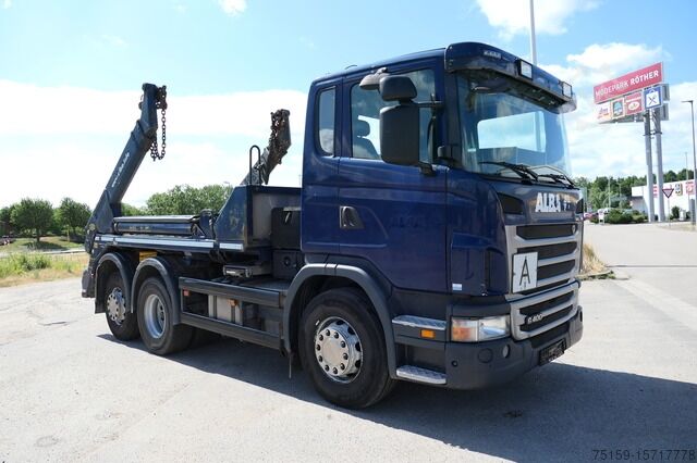 The Scania G 400 B6X2 Meiller is a used skip loader with