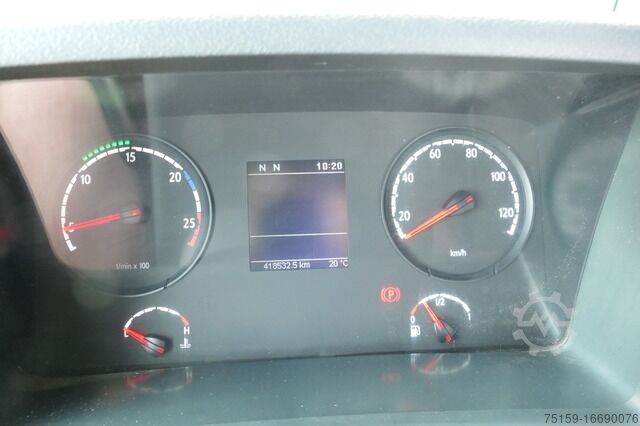 The Scania G 440 6x2 Meiller offers a robust solution for commercial use as a skip loader. Powered by a powerful 12,740 cc diesel engine, it delivers 441 hp and meets the Euro 5 emissions standard. The vehicle is in solid used condition with a mileage of 418,532 km. The automatic transmission makes it easy to maneuver, and it is equipped with air conditioning and a trailer hitch for comfort. The model has a total registration from March 15, 2012 and is provided with a green environmental sticker (4), which allows it to be used in green zones. Its dimensions of 7,280 mm in length, 2,550 mm in width and 3,600 mm in height, as well as the permissible total weight of 26,000 kg, make it ideal for various transport tasks. With its blue paintwork, it is